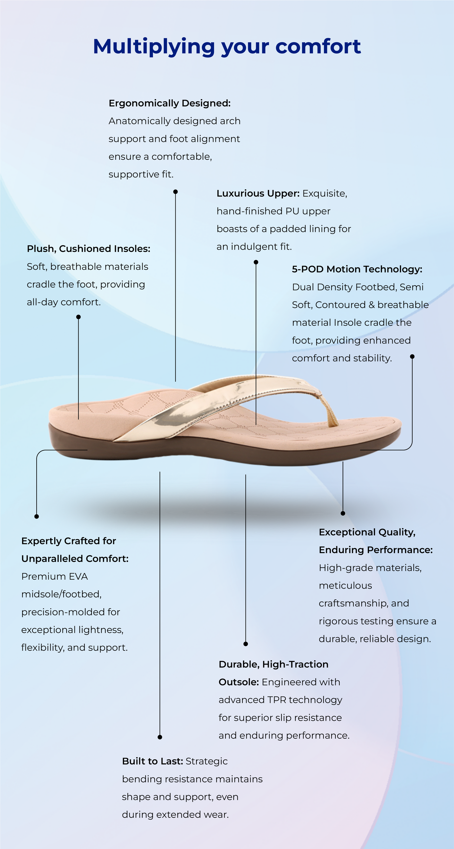 Innovative Motion Technology: Say hello to our patented Motion Technology, meticulously engineered for women's arch support. Combining style with functionality, it effectively prevents foot pain and discomfort, ensuring superior comfort.